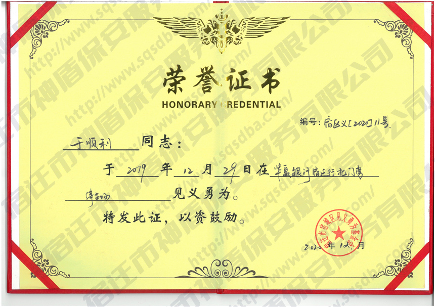 您所在位置:首頁 > 善行義舉 > 保安員見義勇為獲獎證書